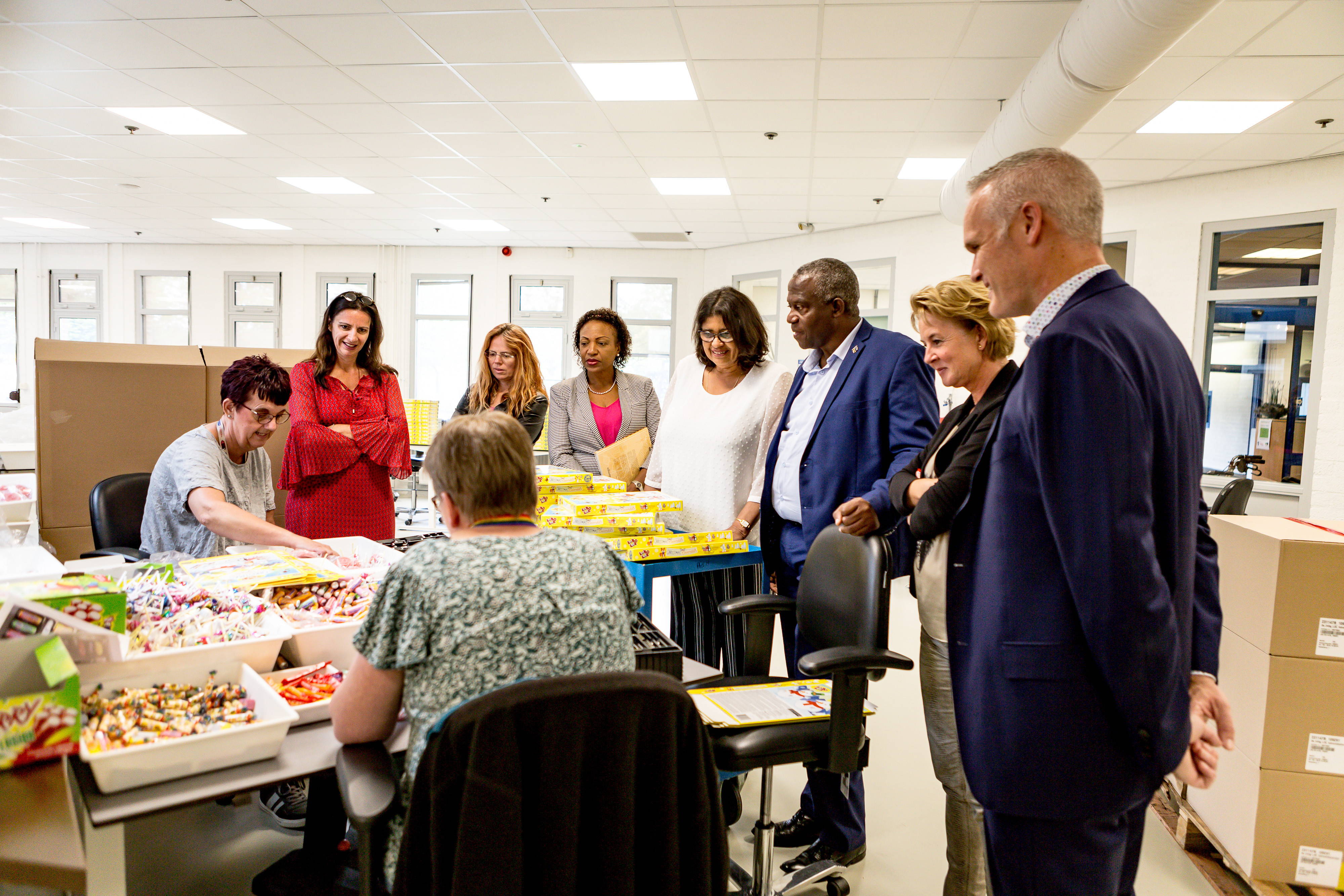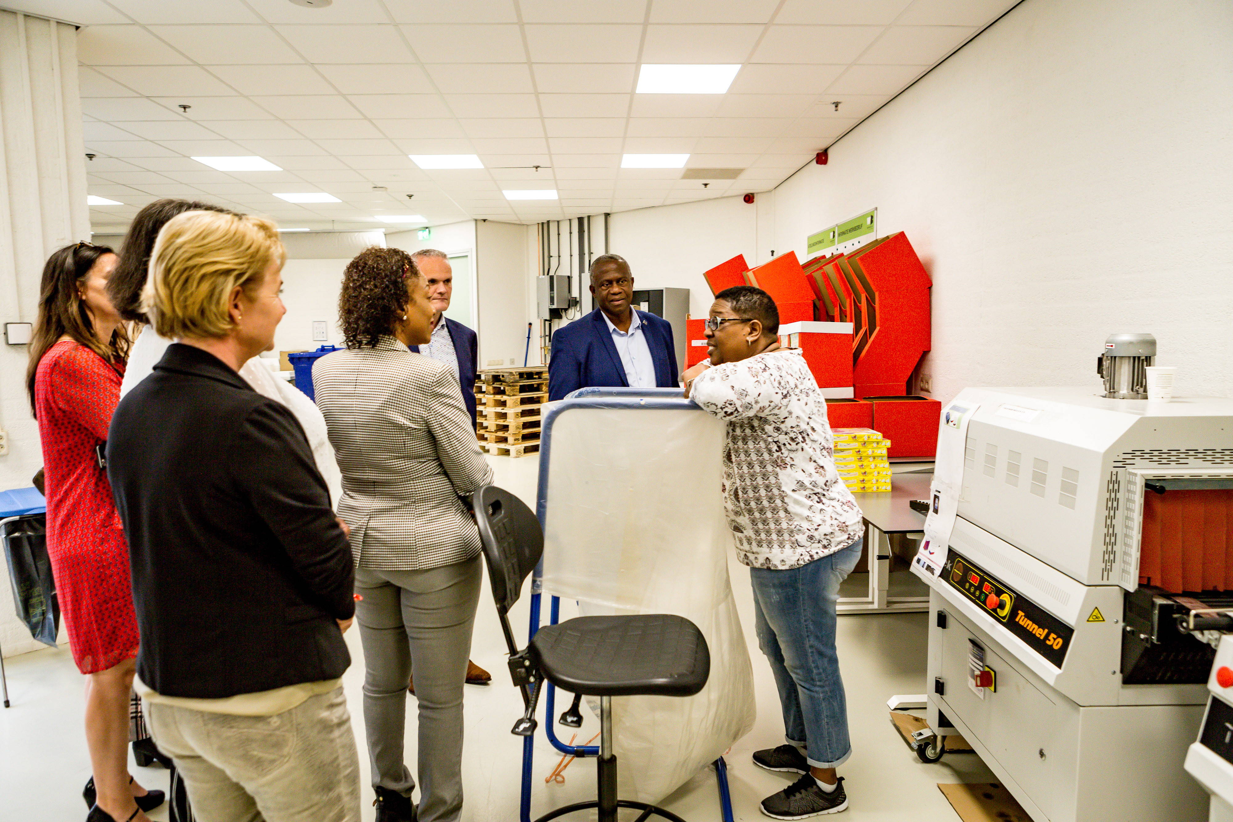 Uiteraard mocht een bezoek aan de productieafdelingen op de Boekweitweg niet ontbreken. Enkele medewerkers uit Curaçao herkenden de Minister en spraken in Papiamento met hem. Dat leidde tot mooie gesprekjes!