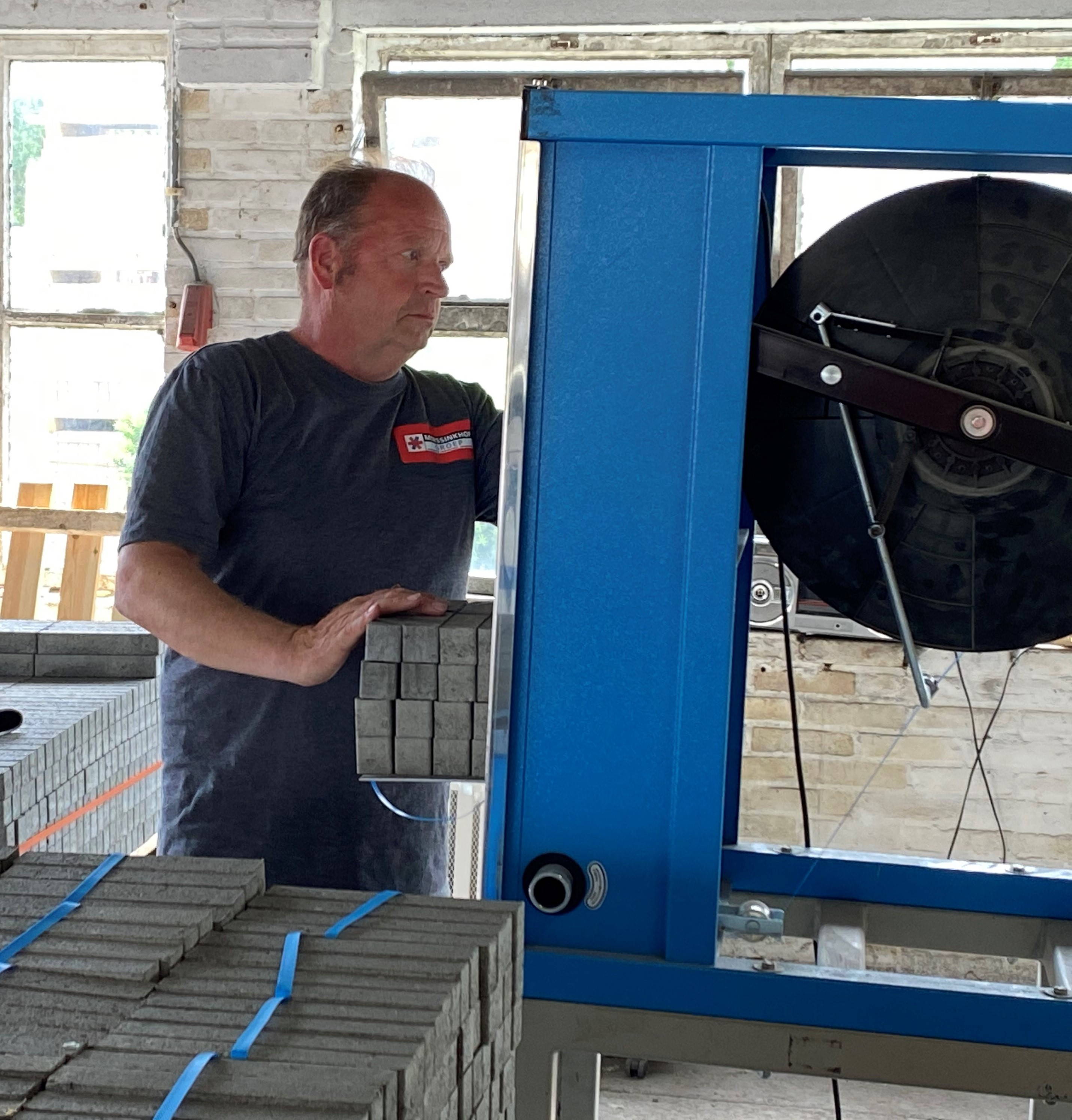 Toen ik hier begon, deden Henk, Marcel en ik hetzelfde werk. We pakten halfkorte steentjes in en maakten er pakketjes van. Wij noemen die stenen ‘versteende frikandellen’. Daar lijken ze op, zegt Michel lachend. “Inmiddels hebben we ieder onze eigen werkzaamheden gekregen. Ik voel mij erg gewaardeerd bij Morssinkhof Groep. Ik wil hier nooit meer weg!”