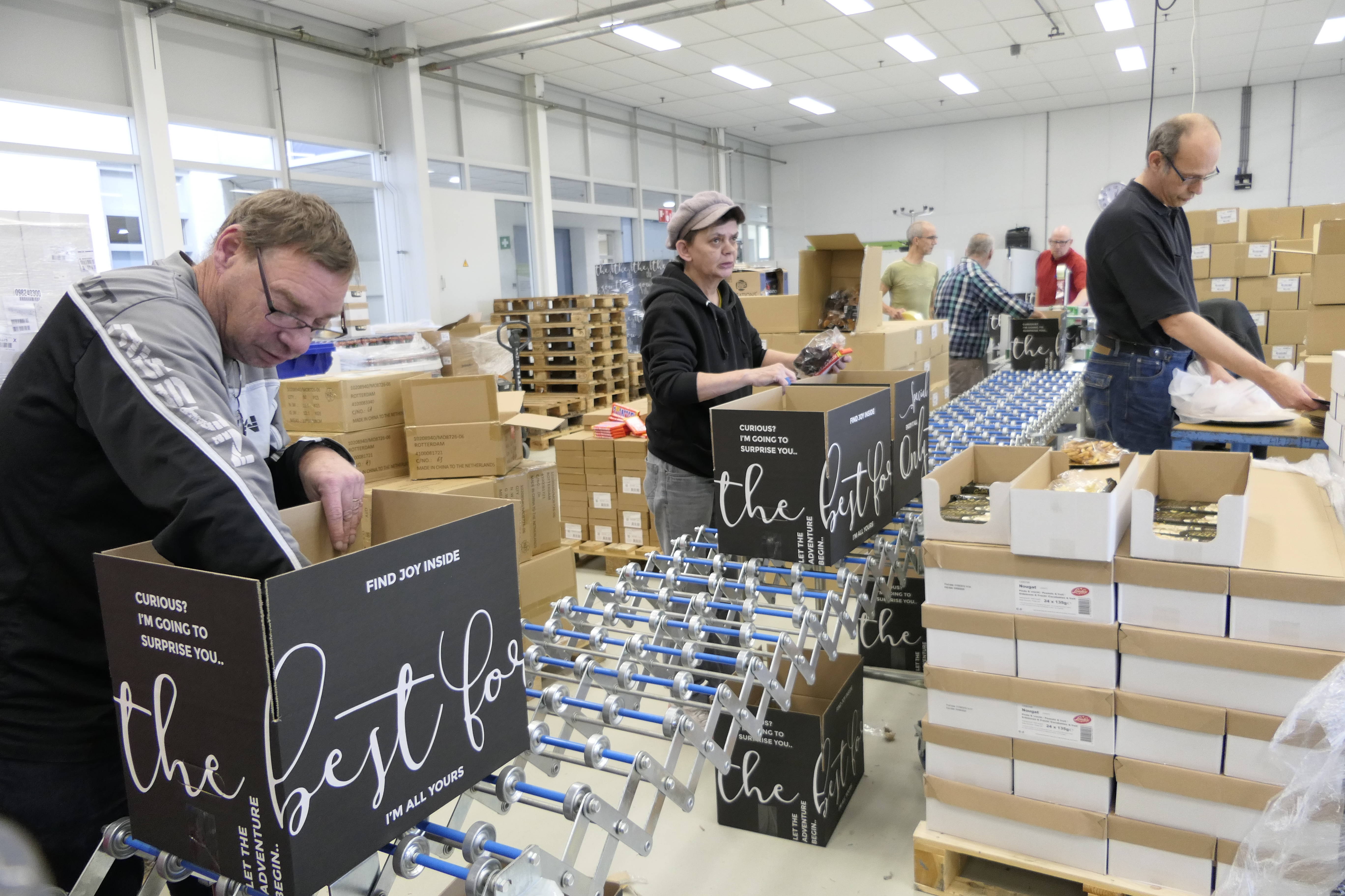 5000 kerstpakketten pakken SW-medewerkers van WerkBedrijf deze weken in voor Time 4 Gifts. Werk dat ze met veel plezier doen. De keuze voor WerkBedrijf was voor Patricia van Dorst, eigenaresse van Time 4 Gifts, logisch: “De samenwerking verloopt geweldig, de lijntjes zijn kort en zowel wij als onze klanten vinden het belangrijk dat we verder kijken dan commercieel belang.”